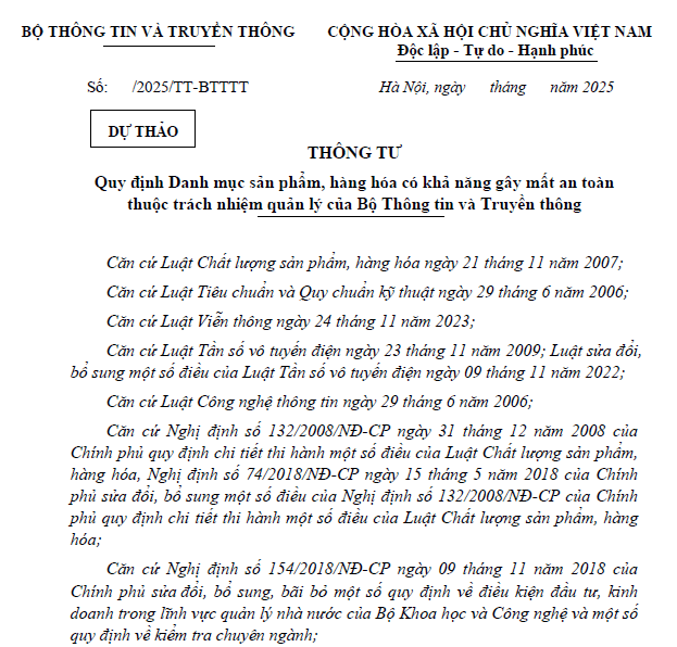 Recently, the Ministry of Information and Communications of Vietnam (MIC-MOST) released a draft notice regarding the List of Products and Goods Under the Management of